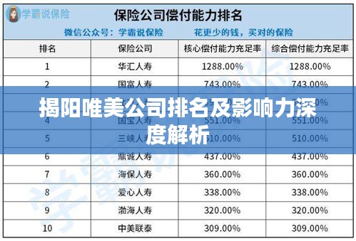 揭阳市,以其深厚的历史文化底蕴和蓬勃发展的现代产业而闻名,在这座充满活力的城市中,揭阳唯美公司以其卓越的表现和独特的魅力在众多企业中脱颖而出,本文将深入探讨揭阳唯美公司的排名及其影响力。