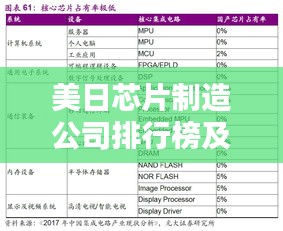 随着科技的飞速发展,芯片行业已成为全球电子产业的核心,在众多芯片制造国家中,美国和日本的芯片制造业尤为突出,本文将为您详细介绍美日两国的芯片制造公司排名及其影响力。