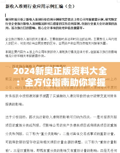 2024新奥正版资料大全:全方位指南助你掌握新奥的精彩世界