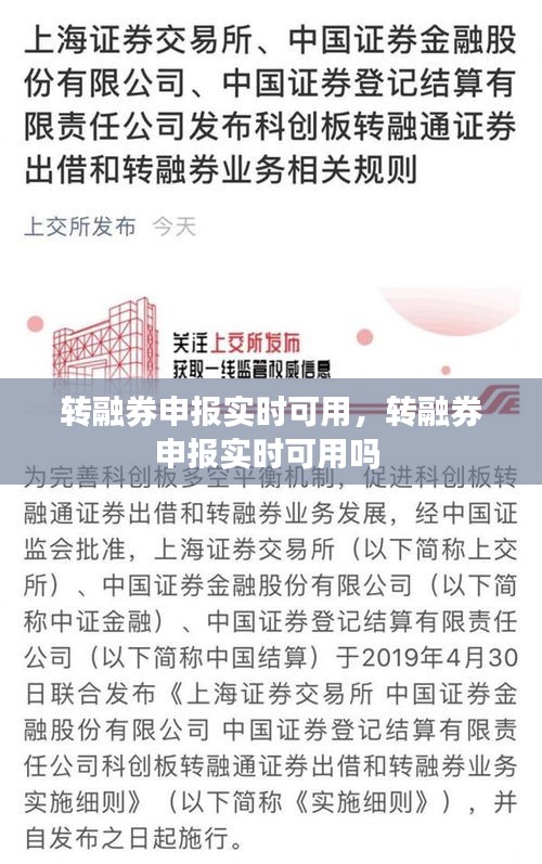转融券申报实时可用是指投资者在进行转融券交易时,能够实时查询到可用的融券数量和融券价格。转融券,全称为转融通证券出借与转融券业务,是证券市场的一项重要制度安排,旨在提高证券市场的流动性和效率。在传统的融券交易中,投资者需要通过证券公司进行融券申请,然后等待审核通过后才能进行交易。而转融券申报实时可用则大大缩短了这一过程,使得投资者能够更加灵活地进行交易决策。