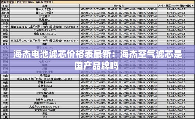 海杰电池滤芯价格表最新:海杰空气滤芯是国产品牌吗