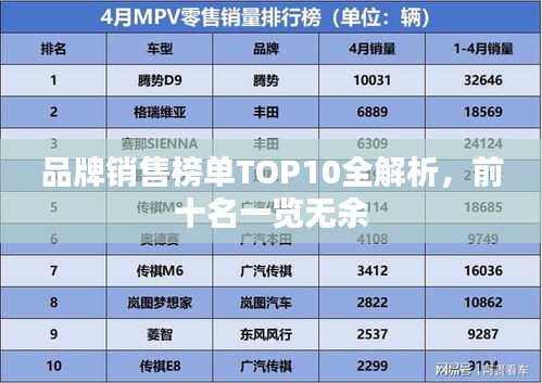 品牌销售榜单TOP10全解析,前十名一览无余