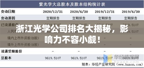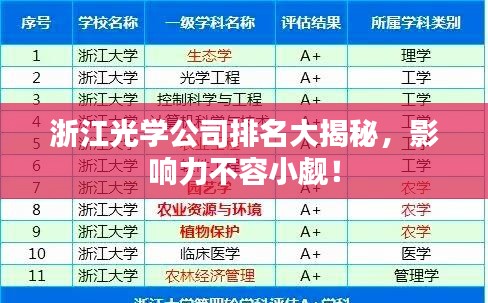 浙江,以其深厚的历史文化底蕴和蓬勃发展的现代产业,成为了中国经济发展的重要引擎之一,在高科技领域,浙江光学公司以其卓越的技术创新能力和产品质量,在国内外市场上赢得了良好的声誉,本文将探讨浙江光学公司的排名及其影响力。