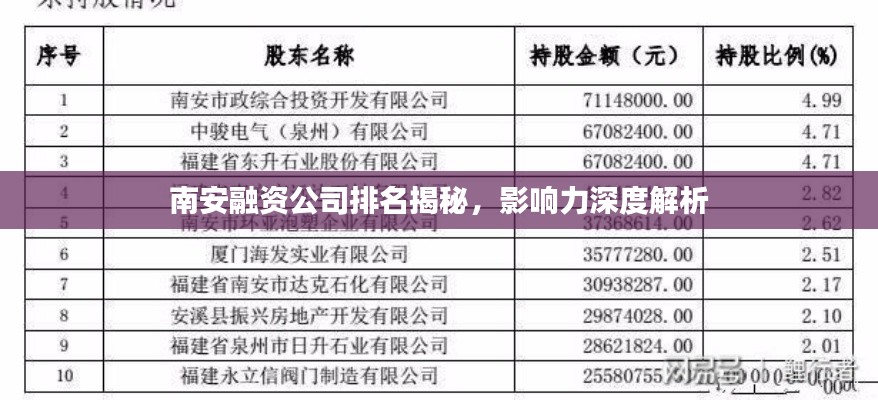 南安融资公司排名揭秘,影响力深度解析
