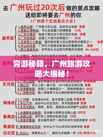 广州,这座繁华的都市,不仅是广东的经济、文化中心,更是一个充满魅力的旅游胜地,穷游的朋友们,不必担心预算问题,广州有许多适合穷游的景点和美食,让我们一起探索广州的魅力吧!