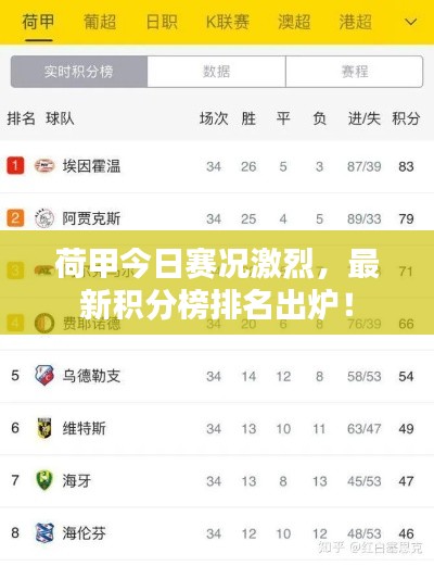 荷兰足球甲级联赛( Eredivisie),简称荷甲,是荷兰最高级别的足球联赛,作为欧洲足球的重要赛场之一,荷甲联赛吸引了众多球迷的关注,本文将为您带来荷甲今日最新积分榜的相关内容。