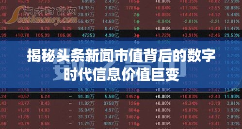 随着互联网的飞速发展,新闻行业的格局也在发生着深刻变化,头条新闻市值作为反映新闻信息传播价值的重要指标,不仅体现了新闻媒体的商业价值,更反映了数字时代信息价值的巨变,本文将围绕头条新闻市值展开讨论,探究其背后的商业价值及影响因素。