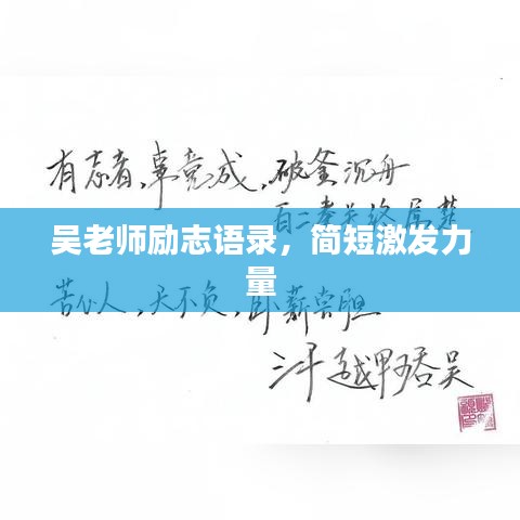 吴老师的励志语录简短而深刻,它们像一盏盏明灯,指引着我们前行,在面对困难时,我们要勇敢面对;在追求梦想时,我们要坚定信念;在奋斗的过程中,我们要勤奋努力,珍惜每一刻,我们要保持自信,团结合作,保持积极心态,不断学习进步,让我们一起铭记吴老师的励志语录,共同成长,共创美好未来。