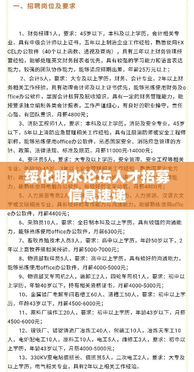 随着经济的繁荣和行业的发展,绥化明水地区的企业和机构不断壮大,为广大求职者提供了丰富的就业机会,本文将为您详细介绍绥化明水论坛最新的招聘信息,帮助您了解当地的就业市场,为您的求职之路提供有力支持。