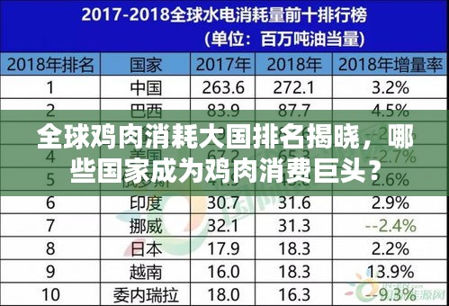 在全球经济高速发展的今天,人们的生活水平不断提高,饮食习惯也随之改变,在众多肉类食品中,鸡肉因其营养丰富、口感鲜美而备受青睐,本文将为您揭示全球鸡肉消耗排名,带您了解哪些国家在鸡肉消费上走在世界前列。