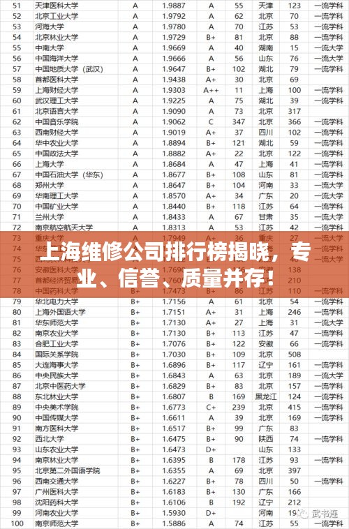 随着城市化进程的加快,各种维修服务需求日益增长,在上海这座繁华的国际大都市,维修公司的数量众多,服务质量也参差不齐,本文将为您介绍上海维修公司的排名,以便您在选择维修服务时做出更为明智的决策。