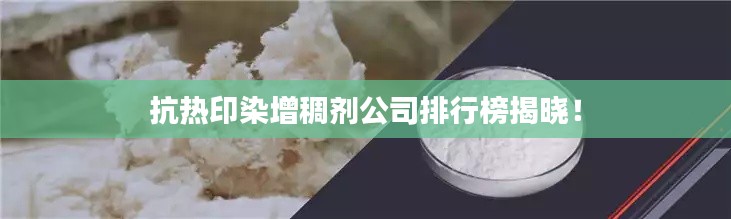 抗热印染增稠剂公司排行榜揭晓!