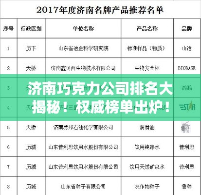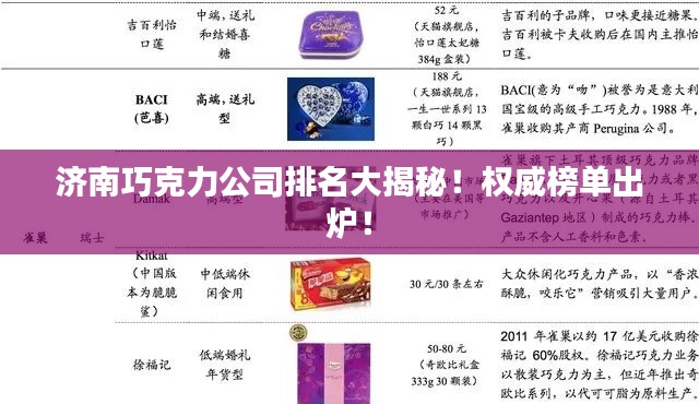 济南,作为山东省的省会城市,不仅是经济繁荣的象征,也是美食文化的汇聚之地,在这座充满活力的城市中,巧克力产业同样蓬勃发展,众多巧克力公司如雨后春笋般崭露头角,本文将为您揭晓济南巧克力公司的排名,带您了解这些甜蜜事业的成功典范。