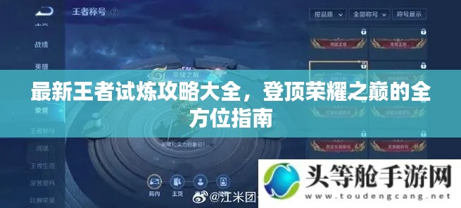 最新王者试炼攻略大全,登顶荣耀之巅的全方位指南