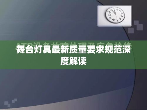 随着舞台艺术的飞速发展,舞台灯具在塑造舞台氛围、提升演出效果方面扮演着至关重要的角色,对舞台灯具的质量要求规范也日趋严格,本文将探讨舞台灯具质量要求的最新规范,以确保舞台灯具的性能和质量满足现代舞台演出的需求。