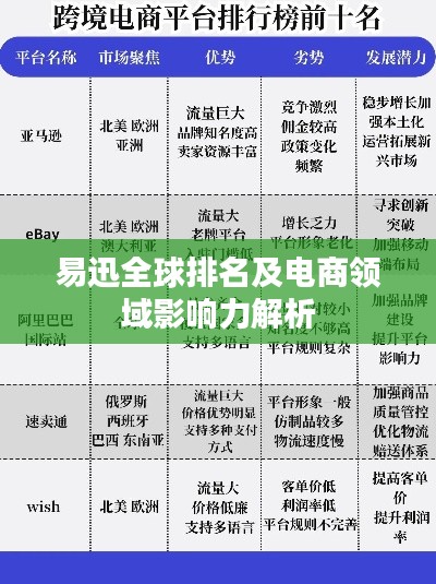 随着电子商务行业的飞速发展,易迅作为中国的领先电商平台之一,其全球影响力日益扩大,本文将探讨易迅的世界排名及其在全球电商领域的影响力。