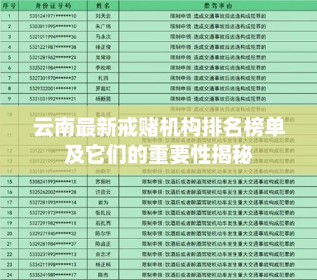 随着社会对赌博问题的关注度不断提高,越来越多的人意识到赌博对个人和社会的危害,在云南地区,为了帮助那些沉迷于赌博的人们回归正常生活,许多戒赌机构应运而生,本文将介绍云南地区最新的戒赌机构排名名单,并探讨其重要性。