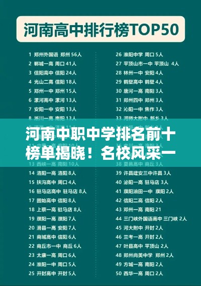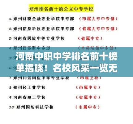 河南省作为中华文明的发源地之一,其教育事业一直备受关注,中职教育作为职业教育的重要组成部分,在培养技能型人才方面发挥着重要作用,本文将介绍河南中职中学排名前十名,为广大学生和家长提供参考。