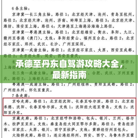 承德与丹东,两地风景如画,历史悠久,文化丰富,自驾旅行爱好者们,是否想要从承德出发,沿着美丽的路线,自驾至丹东,感受一路的风光?本文将为您提供承德到丹东自驾攻略最新指南,助您一臂之力,轻松完成这次自驾之旅。