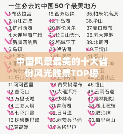 在中国广袤的土地上,各地的自然风光各有千秋,美不胜收,本文将为您揭晓中国风景最美的十个省份,这些地方的风景如画,令人流连忘返。