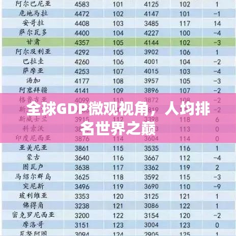 在全球化的今天,一个国家的经济实力和发展水平往往通过其国内生产总值(GDP)来体现,而人均GDP,即GDP与该国人口的比值,则更能反映出该国人民的平均生活水平,本文将探讨全球人均GDP的排名情况,揭示各国经济发展的微观视角。