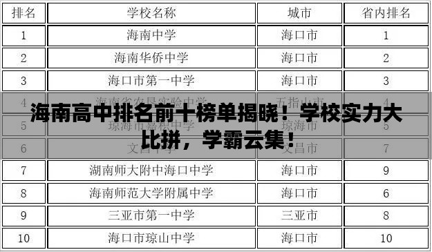 海南高中排名前十榜单揭晓!学校实力大比拼,学霸云集!