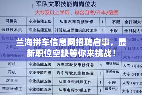 兰海拼车信息网招聘启事,最新职位空缺等你来挑战!