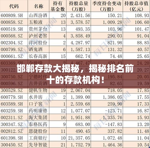 邯郸存款大揭秘,揭秘排名前十的存款机构!