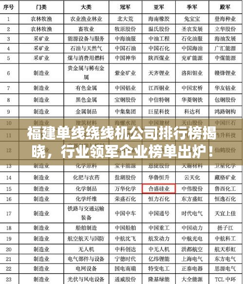 在福建省,单线绕线机行业得到了稳步发展,众多企业凭借先进的技术、优质的产品和良好的服务赢得了市场的认可,以下是福建单线绕线机公司的排名及相关介绍。