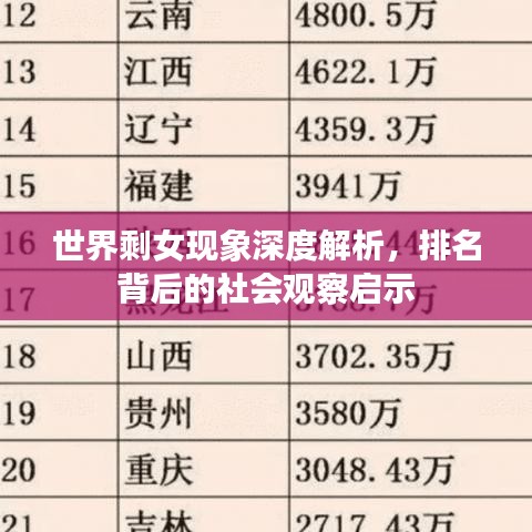 近年来,“世界剩女排名”逐渐成为公众关注的焦点话题,随着女性独立意识的崛起和社会变迁,不少国家都出现了适龄未婚女性人数增多的现象,本文将围绕这一主题展开,探讨全球范围内的剩女现象及其背后的社会因素。