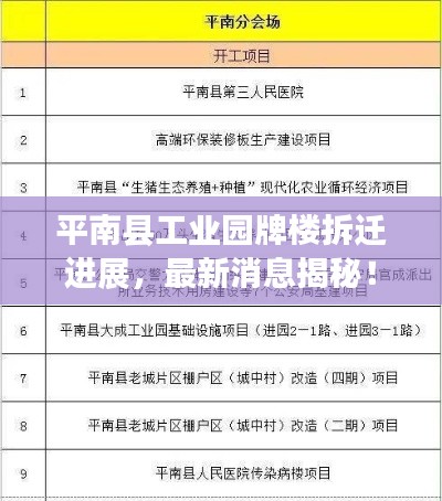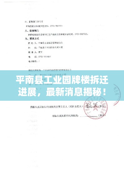 随着城市的发展与扩张,平南县工业园牌楼地区的拆迁问题成为了公众关注的焦点,本文将对平南县工业园牌楼拆迁的最新消息进行全面的介绍与分析。
