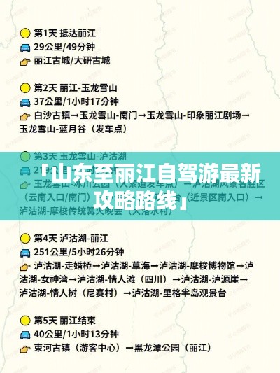 山东自驾丽江之旅是一段充满挑战与乐趣的旅程,在规划行程时,请根据自己的时间、喜好等因素选择合适的路线,沿途的景点丰富多样,既有山水风光,又有民族风情,在游玩过程中,请注意安全驾驶,遵守各地规定,确保自身安全,希望本文的攻略能为您的山东自驾丽江之旅提供帮助,祝您旅途愉快!