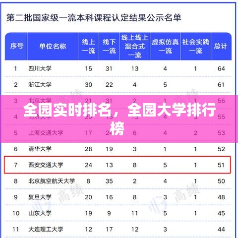 全园实时排名,全园大学排行榜