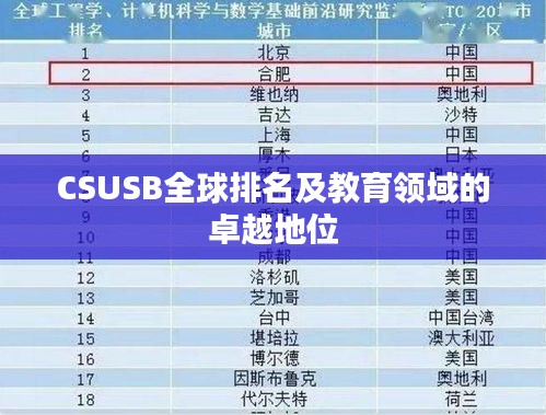 随着全球化的推进,高等教育机构的国际排名逐渐受到广泛关注,CSUSB,即加州州立大学圣贝纳迪诺分校(California State University, San Bernardino),作为一所位于美国的重要学府,其世界排名及在全球教育领域的地位成为众多学子关注的焦点。