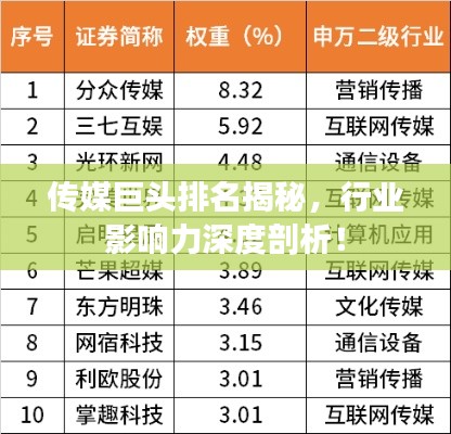 传媒巨头排名揭秘,行业影响力深度剖析!