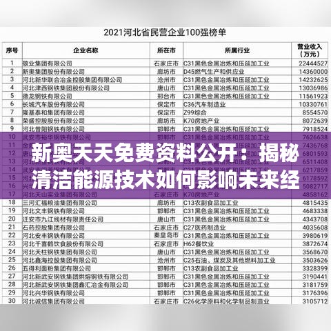 新奥天天免费资料公开:揭秘清洁能源技术如何影响未来经济发展