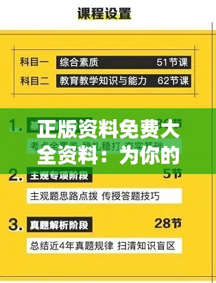 在这个信息爆炸的时代,正版资料免费大全资料成为了知识的海洋,为求知若渴的学者和普通大众提供了海量的免费资源。本篇文章将详细介绍正版资料免费大全资料的具体内容,帮助读者更好地利用这些资源进行知识积累。