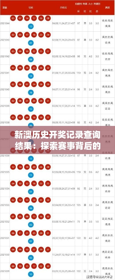 新澳历史开奖记录查询结果所涉及的文献资料为我们提供了一个全方位的视角,让我们能够洞察赛事背后人物的故事、文化影响以及社会发展。每一篇文献都是对新澳历史赛事深入研究的宝贵资源,它们丰富了我们的历史知识,也让我们对赛事背后的人物和故事有了更深刻的理解。