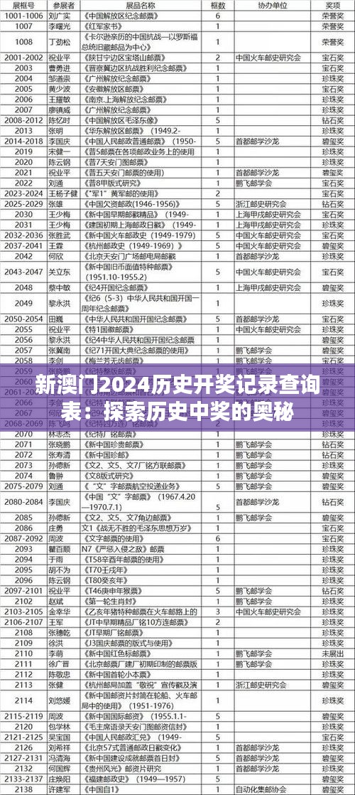新澳门2024历史开奖记录查询表:探索历史中奖的奥秘