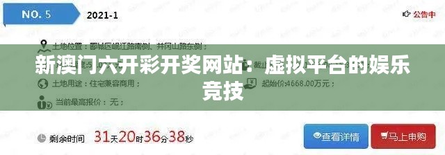 新澳门六开彩开奖网站:虚拟平台的娱乐竞技