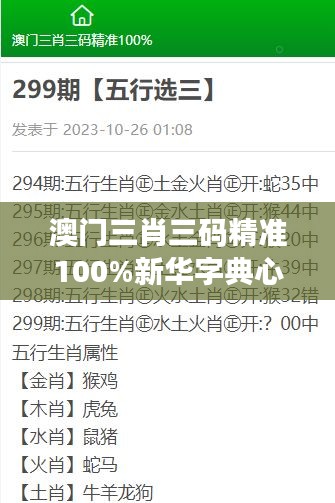 “澳门三肖三码精准100%新华字典心灵成长向导”这一主题涵盖的是几个不同领域的结合,包括澳门的历史文化、新华字典的应用,以及个人心灵成长的指导。本文旨在概述这三个领域的文献资料,以期提供一个清晰的框架以供读者参考和进一步研究。