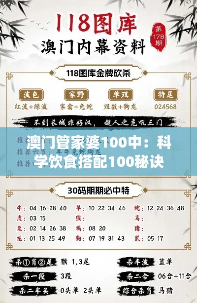 在现代社会中,人们对健康和科学饮食的需求日益增长。科学的饮食搭配有助于提高我们的身体素质、促进健康发育、提高工作效率以及预防疾病。"澳门管家婆100中:科学饮食搭配100秘诀"便是一本集结了大量科学搭配饮食知识和实际操作方法的书籍。本文将详细解读这本书的内容和特点,为广大读者提供一份科学、健康的饮食指南。
