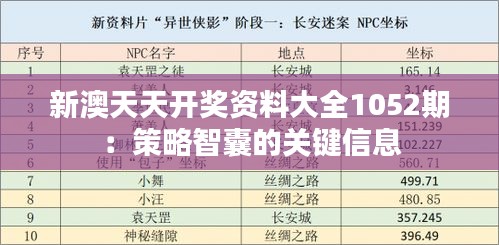 新澳天天开奖资料大全1052期:策略智囊的关键信息