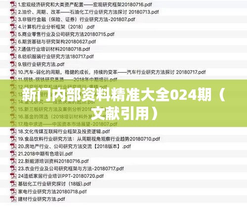 新门内部资料精准大全024期(文献引用)是一份综合性的研究资料,旨在为读者提供广泛而详细的学术信息和参考资料。这份资料包含了多个领域的文献综述、关键研究论文以及相关数据信息,目的在于帮助读者在学术研究和知识探索中获得精准和全面的指导。以下是这份资料的详细内容概述: