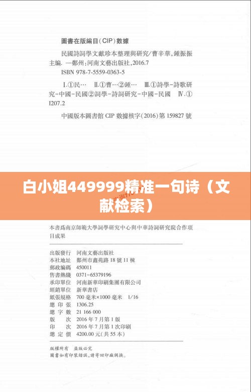 “白小姐449999精准一句诗(文献检索)”这个主题乍一听给人留下了神秘莫测的印象,这不仅体现了研究的深度,也表明了探究的广度。本文将通过详尽的文献检索,深入探讨诗句“白小姐449999”在不同文献资料中的表达方式、象征意义及其所处的历史和文化背景。通过这一研究,我们期望能够揭示这一文学形象所蕴含的丰富内涵,进而加深对文学作品的理解与认识。