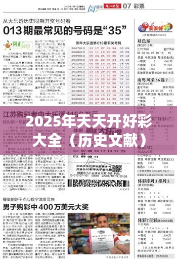 “2025年天天开好彩大全(历史文献)”,一册由历史学家与文化研究者汇编而成的珍贵文献资料集,汇集了大量围绕着2025年这一天所发生的历史事件、社会现象、科技发展与文化演变的详实记录。本文旨在梳理并详细解读这份文献的具体内容,使之成为一个历史研究的窗口,供后来者窥见那个特殊年份的人类文明发展脉络。
