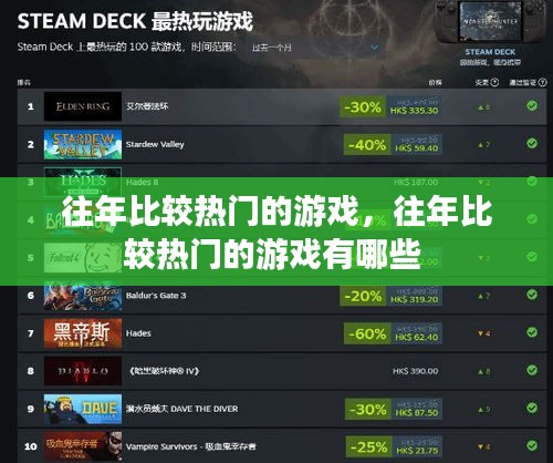 随着科技的飞速发展,游戏产业也在不断壮大。每年都有许多新游戏问世,但总有那么几款游戏能够凭借其独特的魅力和广泛的受众,成为往年比较热门的游戏。这些游戏不仅为玩家带来了无尽的乐趣,也成为了游戏史上的经典之作。