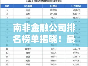 随着全球经济的发展,南非金融市场的繁荣引人注目,众多金融公司在南非崭露头角,展现出强大的经济实力和广阔的发展前景,本文将为您呈现南非金融公司的排名榜,带您了解这些公司的实力和影响力。