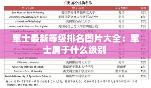 军士作为军队中的重要组成部分,承担着连接士兵与军官的桥梁作用。随着我国军队现代化建设的不断推进,军士的等级制度也日益完善。本文将为您带来军士最新等级排名图片大全,带您详细了解我国军士的等级体系。
