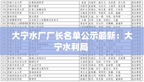 标题:大宁水厂厂长名单公示最新更新